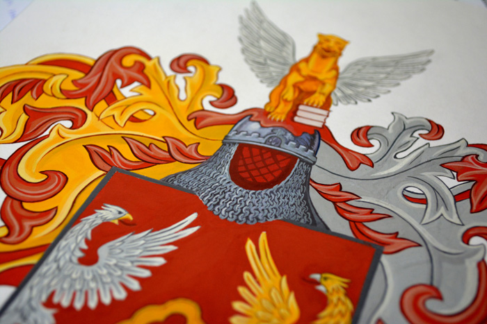 Получив ответы на необходимые вопросы, геральдист приступает к сочинению герба. При этом учитываются пожелания будущего владельца, его психологические характеристики, исторический фон существования рода, и все актуальные геральдические требования.