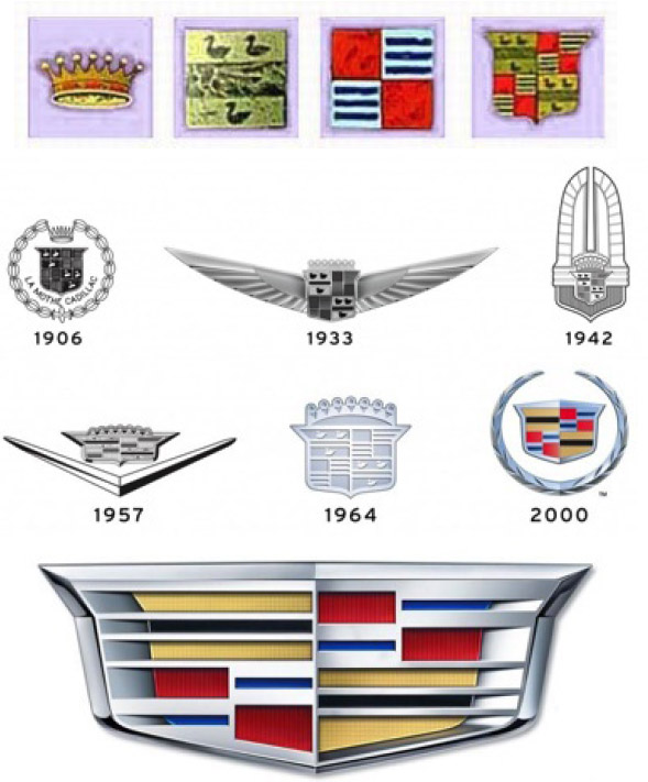 К примеру, автомобильный брэнд Cadillac использует герб основателя Детройта в качестве своего символа с момента создания, однако вид герба претерпевал изменения 38 раз.