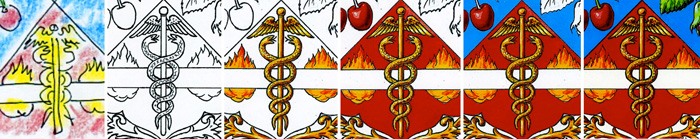 Геральдист вносит корректировки в эскизы с учётом представленных пожеланий и всех требований геральдики. Предоставляются новые варианты с пояснениями. Работа ведётся таким образом до окончательного утверждения эскиза.