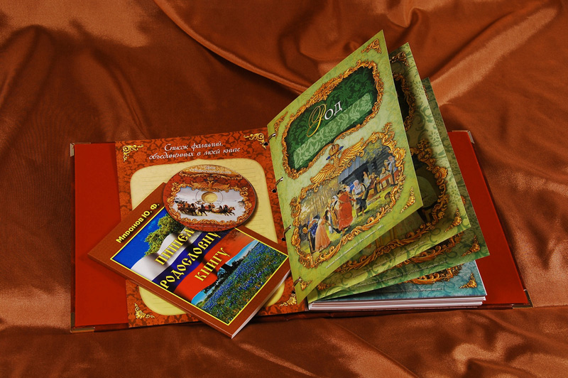 В состав каждой книги входят: внутренний художественный блок листов(12 указателей родов, 50 бланков для заполнения Персональных листов, 12 календарей памятных дат)ПОСМОТРЕТЬ ПОДРОБНЕЕ….